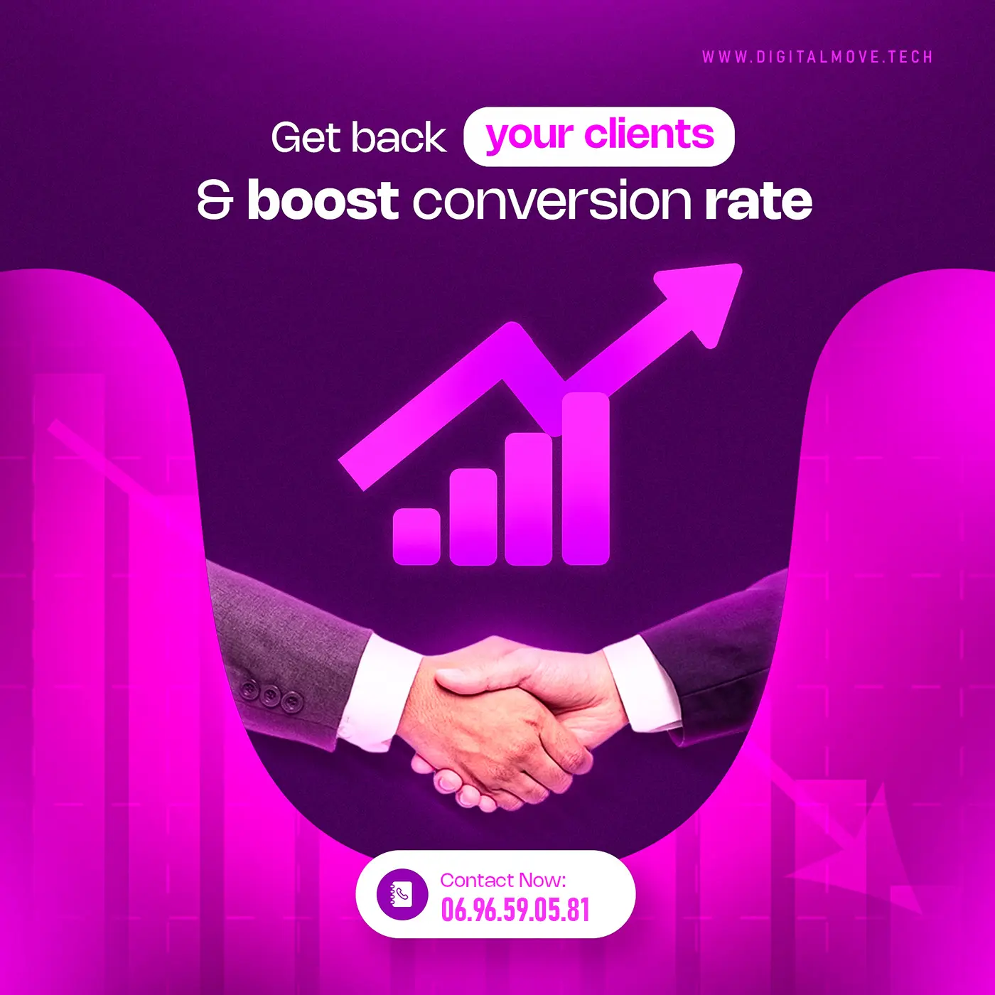 Chez Digital Move, spécialiste en stratégie digitale à Casablanca, Maroc, nous créons des plans d'action personnalisés pour booster la croissance de votre entreprise. En combinant marketing digital, SEO, et publicité en ligne, nous vous aidons à optimiser votre présence sur le web, à atteindre votre audience cible, et à surpasser vos concurrents. Grâce à notre expertise, nous élaborons des stratégies efficaces qui maximisent votre visibilité en ligne et stimulent votre retour sur investissement dans un environnement numérique en constante évolution.